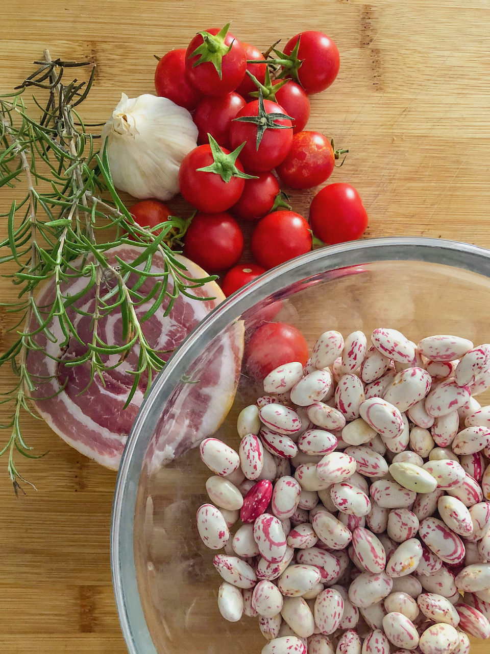 - Approx. 2 lbs fresh unshelled Borlotti beans (or 8 ounces dried beans, soaked overnight and drained)
