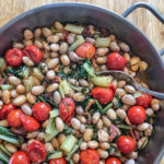 The real payoff is when you can find fresh beans and shell them yourself. You’ll be amazed at the colors that nature has produced. And it’s not only the pod but the bean inside. So look for them in your local farmers market or farm stand. As a substitute, you can use another type of shell bean or use dried Borlotti beans.