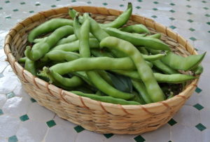 - 2 lbs or so fresh unshelled fava beans (Note 1)