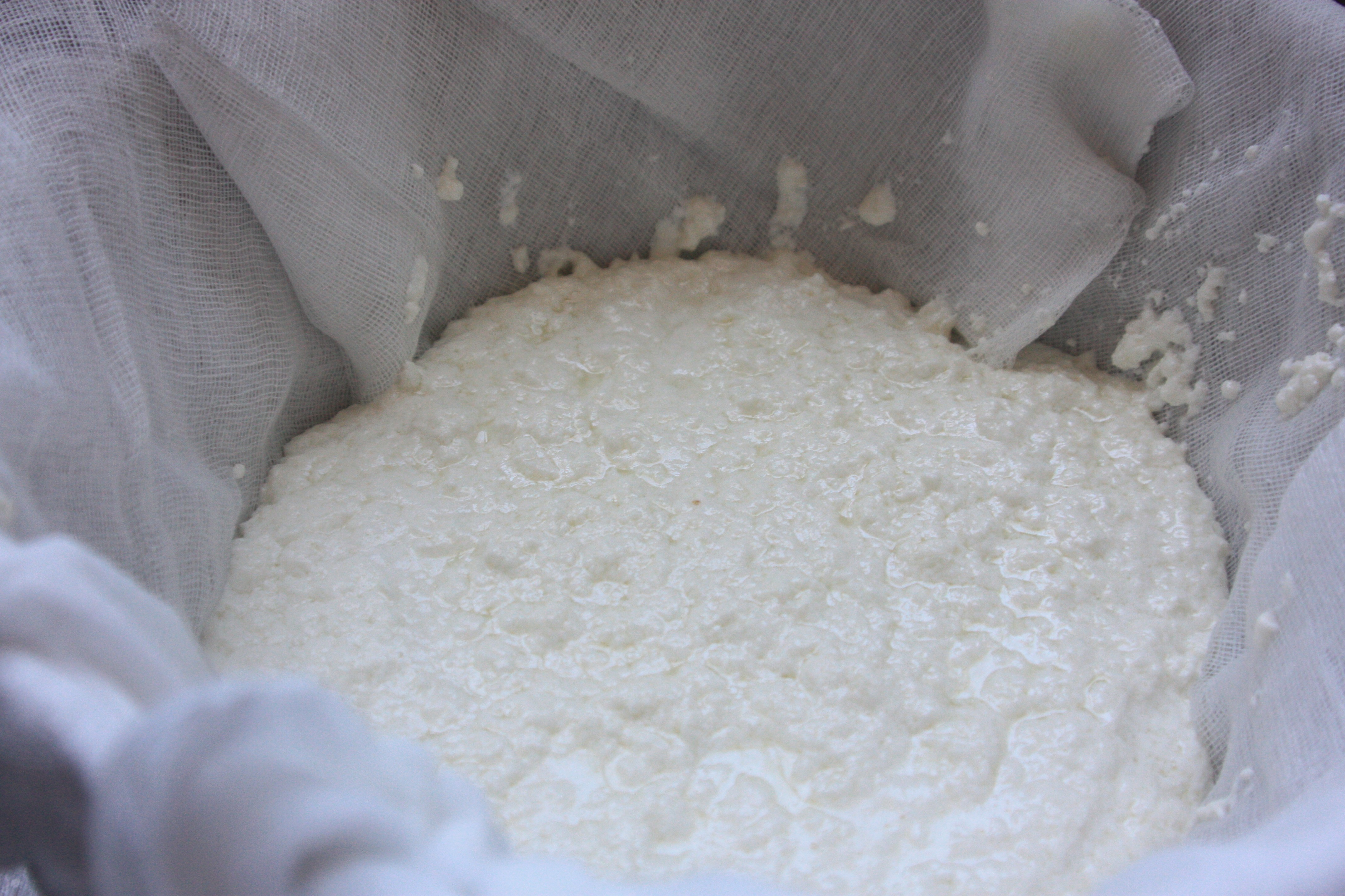 Who in the world would have thought it was this easy to make fresh ricotta??? I will never buy store bought ricotta again! I remember being in Sicilia one Easter with my friend, Danielle. Danielle lived with his parents (of course) in the apartamento above. On Easter morning, the doorbell rang and there stood his friend, who had driven down from his village near Mount Etna, to deliver a freshly killed baby goat for roasting, warm, fresh ricotta and a loaf of freshly baked bread wrapped in simple brown paper. The minute his amico was out the door, I lunged for the ricotta and bread. (I quickly forgot about the poor baby goat which he promptly, and thankfully, delivered to his parents.) We happily sat at his kitchen table slathering fresh, warm ricotta on the bread. How I still remember the taste of that ricotta – warm and wonderfully creamy. So you can imagine my excitement when I recently learned just how simple fresh ricotta is to make! The result is an incredibly creamy, fresh cloud that is incomparable in taste to its store bought relatives. The uses for this delicious treat are endless – slathered on bread alone, with a drizzle of honey, with warm roasted tomatoes, in ravioli, with fresh figs, in desserts and on and on and on. We will be making quite a few of these in the upcoming blogs but for now, lets get down to making this heavenly treat!