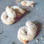 These crunchy, somewhat-hard ring shaped cookies originally were made for those who traveled far from home as they could hold up for long trips and easily be softened when dunked into wine or water. My kind of cookie indeed.