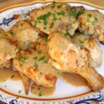 10. Serve the sauce over the finished chicken and sprinkle with a little minced parsley