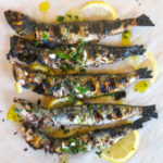 3. Remove from grill and place on a platter. Drizzle the sauce over the sardines. Serve the extra sauce on the side. Drizzle with fresh lemon juice. Serve with plenty of extra lemons on the side.
