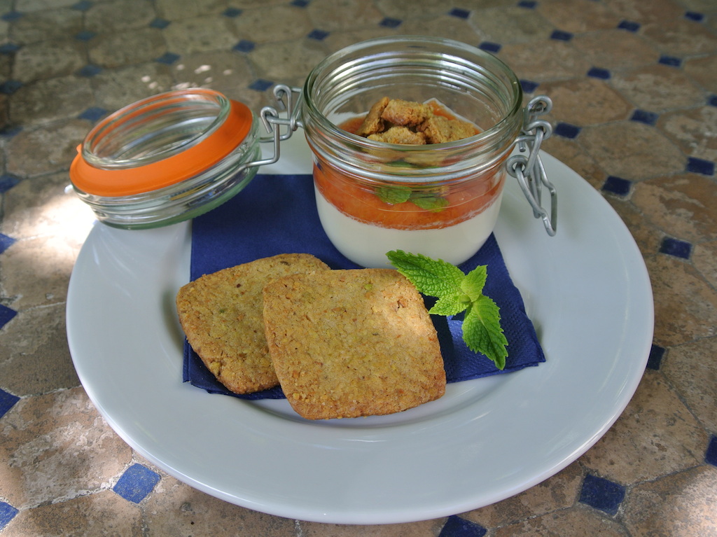 Saffron Panna Cotta with Peach Compote
