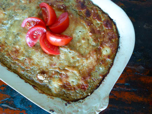 Last night, leftover watermelon became Watermelon Aqua Fresca with Vodka and Mint – in about 10 seconds. How fun is this!! So today, an abundance of eggplant became my new target :-). I figured if I whirled some eggplant, onions, and herbs in my new friend, toss in some tomatoes, cheese, and eggs, that perhaps something between a mousse, gratin and quiche would result. And it did. You do NOT need a fancy Vitamix to make this – a simple blender would do. It is a simple way to add some pizazz to your eggplant without too much fuss at all. Enjoy! (And if you are in the area, stop on by for a Watermelon Aqua Fresca!) Enjoy your weekend! Buon weekend!