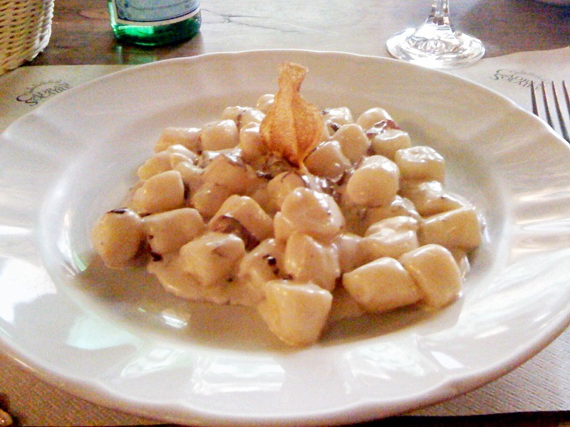 Many years ago, I had driven through the Monte Blanc pass on my way to Cinqueterre with my friend Joan who had been living in Switzerland. I had forgotten just how stunning the peaks are in this amazing region of the world. After my weekend jaunt in Piedmont, I needed to head to Geneva for a meeting so off I went in my little macchina. At first, when leaving Piedmont, I noticed the white haze on the horizon, thinking it was cloud cover but then quickly realized that I was staring at the snow topped peaks of the Alps in the distance. I knew I was headed for something spectacular. With mouth agape, I spent the next few hours trying to drive, navigate and snap photos all at the same time (I know, I know – bad girl). I soon stumbled upon the little town of Courmayeur, with all its alpine ski village charm, at the base of Monte Blanc in the Valle d’Aosta region. The stunning views of the snow coated peaks soaring above the village were breathtaking and although there was still quite a nip in the air, I couldn’t force myself inside. (One side note – men should not be allowed to wear full length fur coats. Ever. They look very, very silly.) Finally, hunger won out and I remembered reading about a restaurant named Cadran Solaire (named after the sun-dial adorning its upper floor). I had also read that reservations are essential so crossed my fingers and headed down Via Roma. Luckily, most of the swanky Courmayeur crowd was still on the slopes and I was able to score a table in the cozy bar area, complete with a vaulted ceiling of stone from the 16th century. Warm and tucked in between the locals enjoying their lunch, I ordered a warming glass of red wine and perused the menu. The restaurant features specialities of the Valle d’Aosta region as expected and my food did not disappoint.
