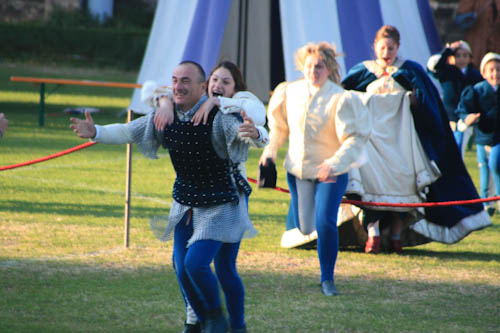 We huddled in the stands watching the archery tournament, not quite understanding the rules. But we listened as the Italians around murmured and dramatically sighed as each arrow either hit or missed its mark – a wild boar shaped target (very cute!). And then – it happened. The winning arrow was fired – and lo and behold, it was Pianello’s arrow!!!
